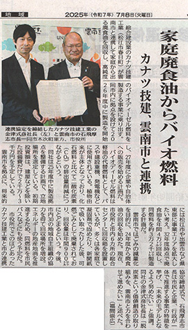 山陰中央新報 2025年7月8日掲載 カナツ技建工業(株)