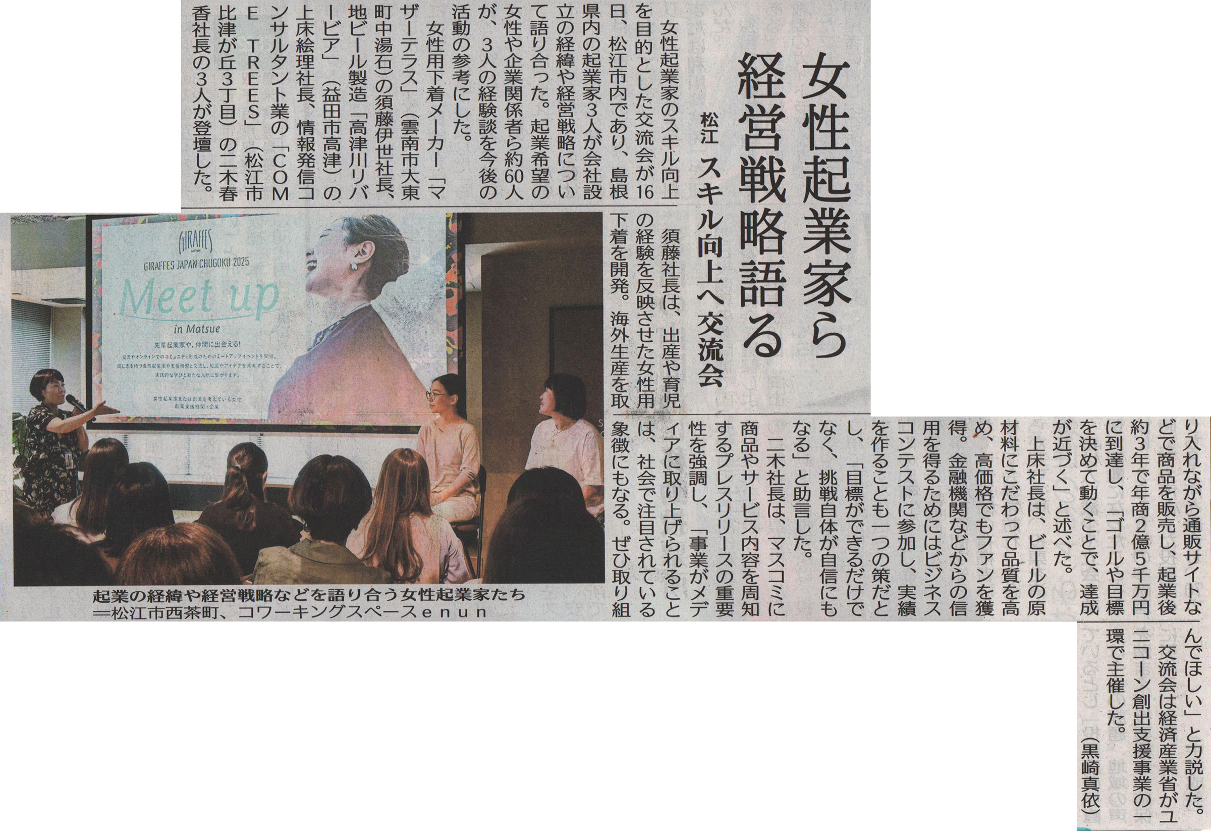 山陰中央新報 2025年7月17日掲載 (株)COME TREES