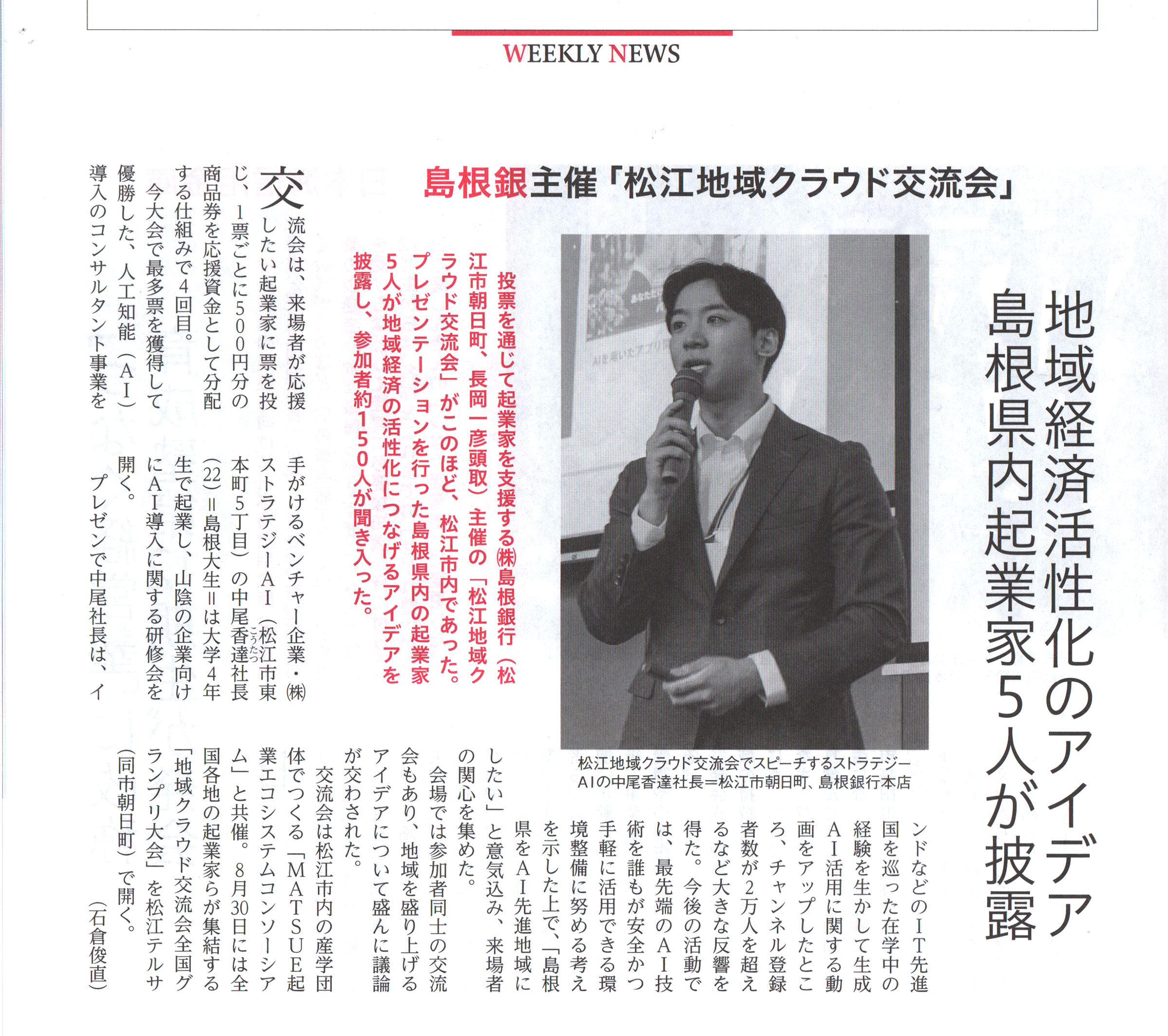 山陰経済ウィークリー 2025年7月1日号掲載 (株)ストラテジーAI