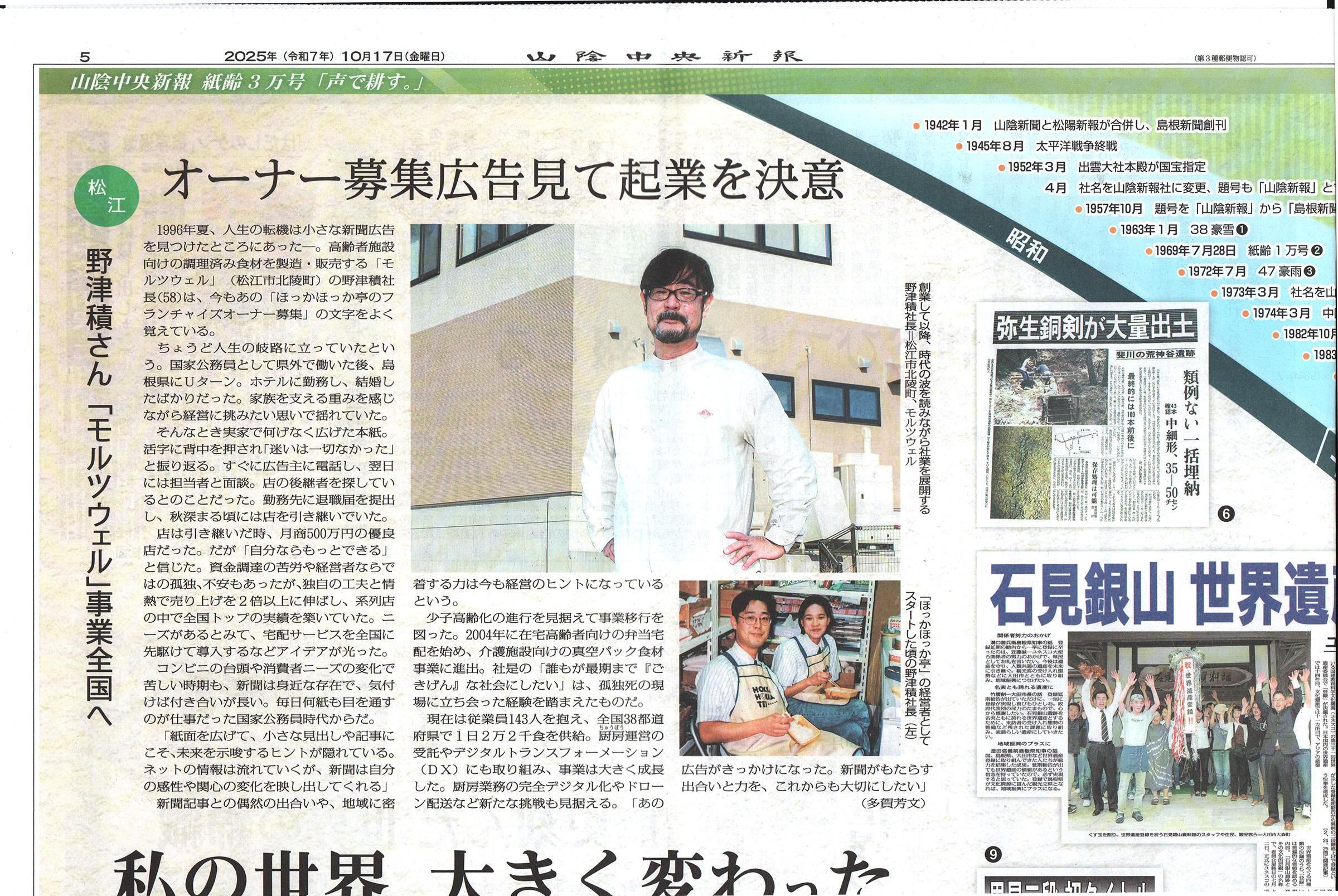 山陰中央新報 2025年10月17日掲載 モルツウェル(株)
