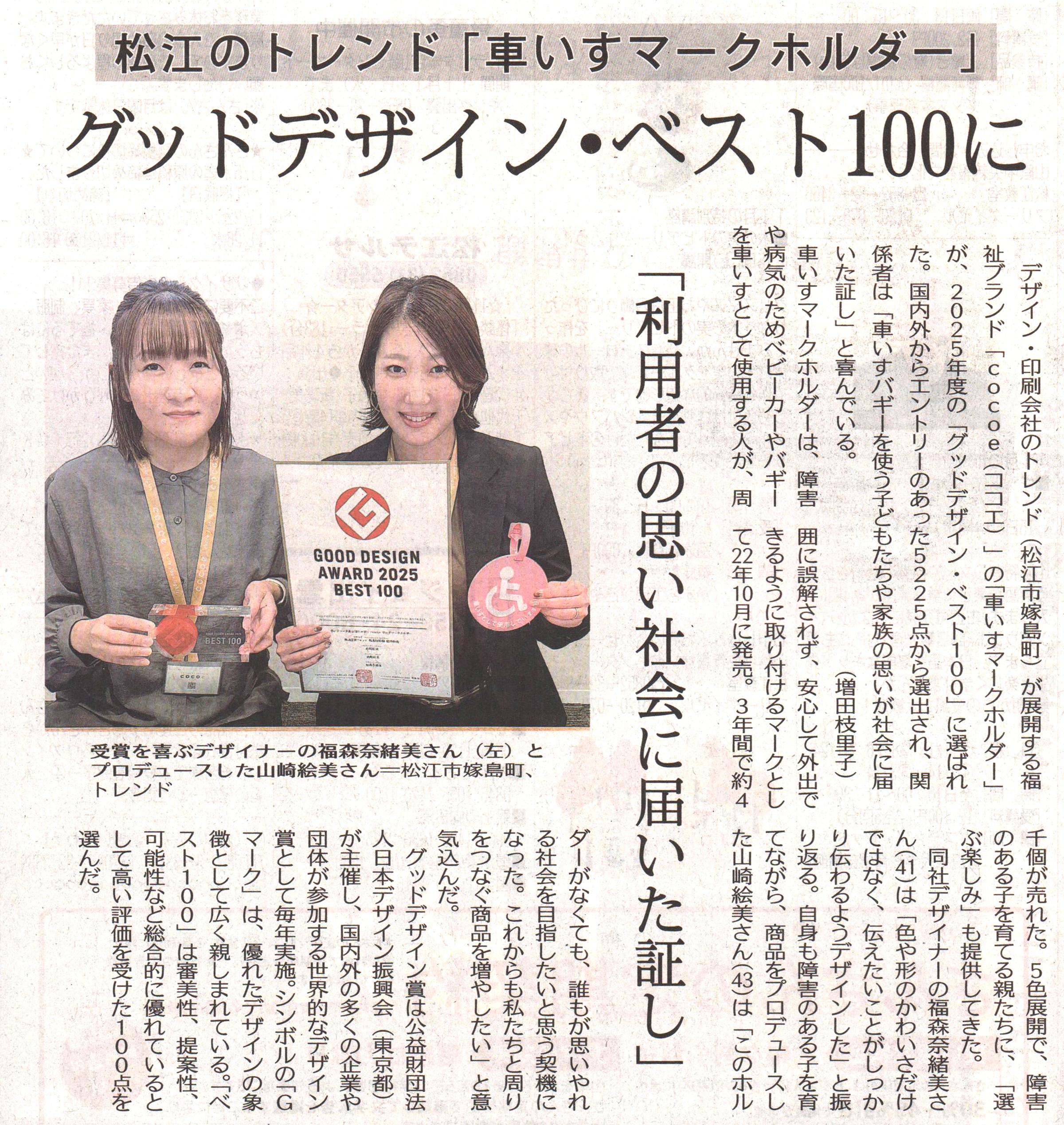 山陰中央新報 2025年3月8日掲載 (株)Cocoro Ribbon