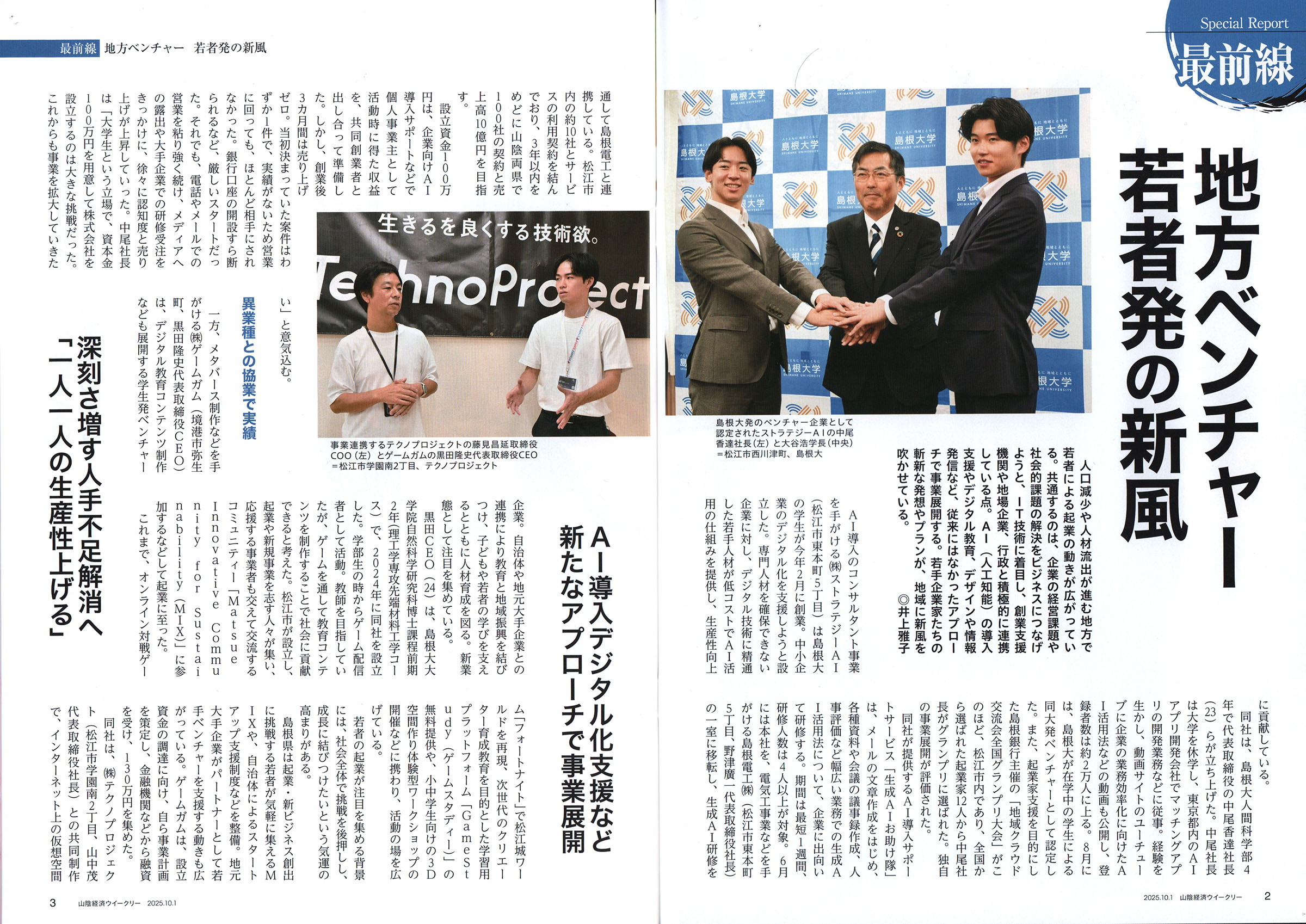 山陰経済ウィークリー 2025年10月1日号掲載 (株)ストラテジーAI