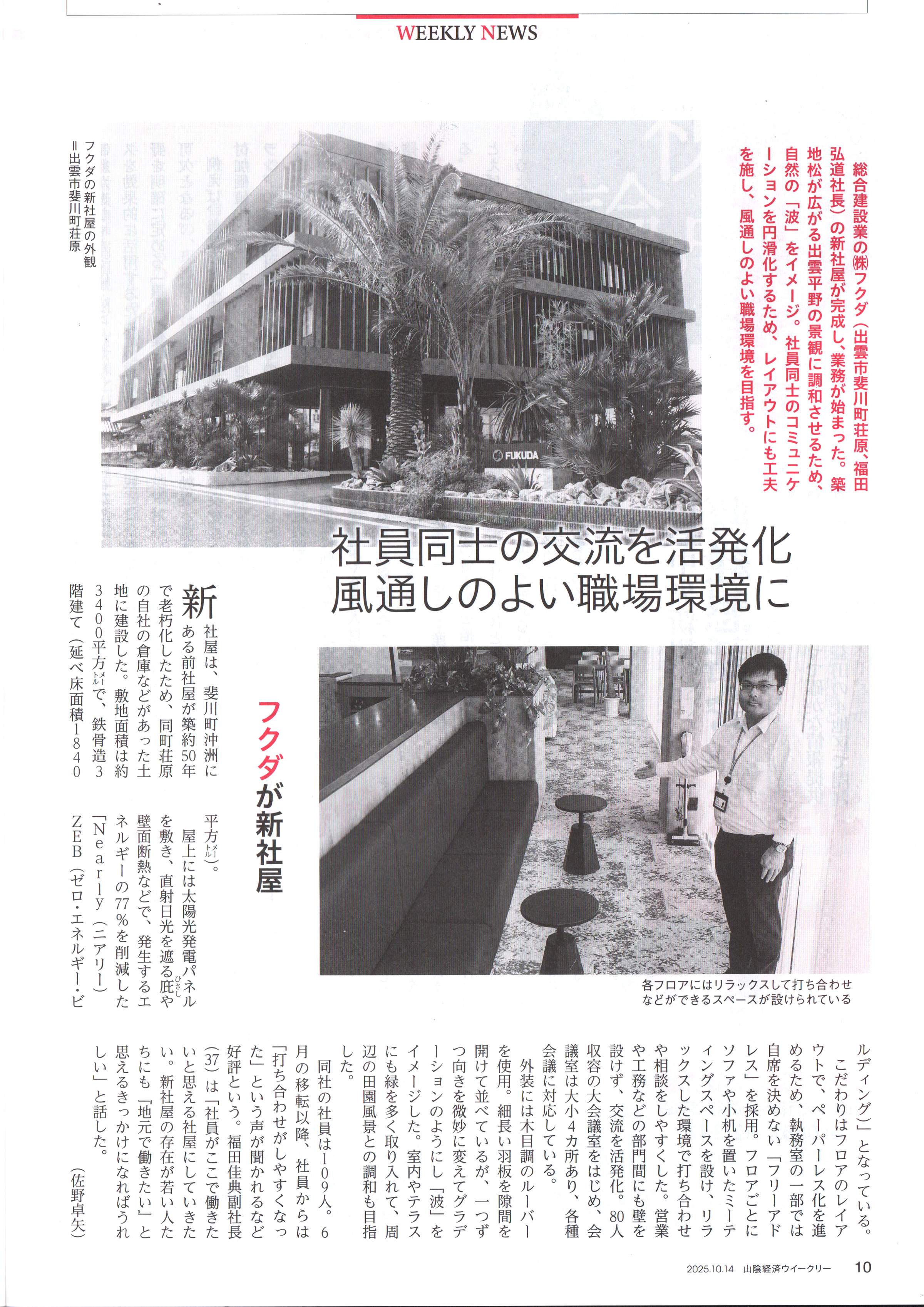 山陰経済ウィークリー 202510月14日号掲載 (株)フクダ