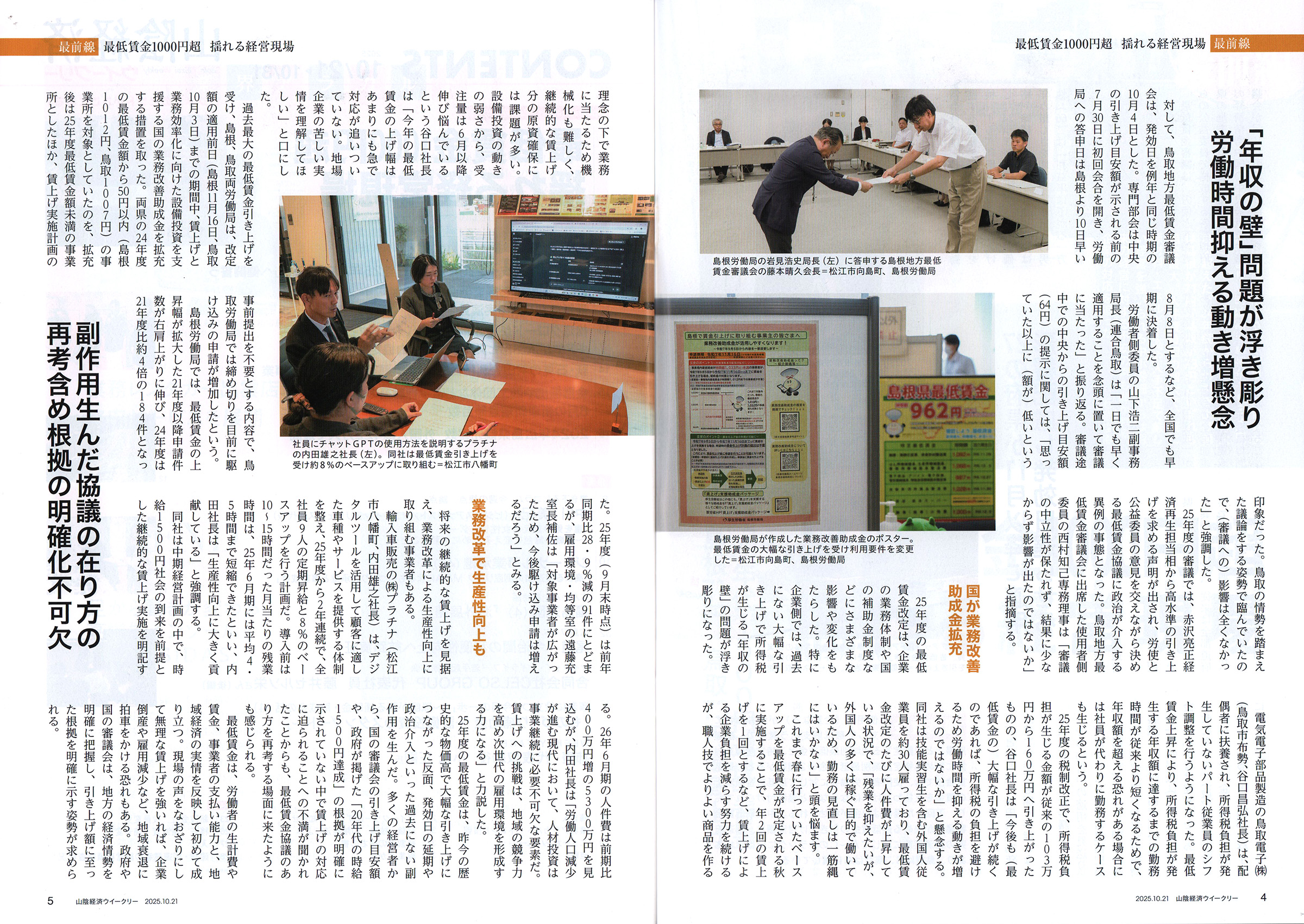 山陰経済ウィークリー 2025年10月21日号掲載 (株)プラチナ