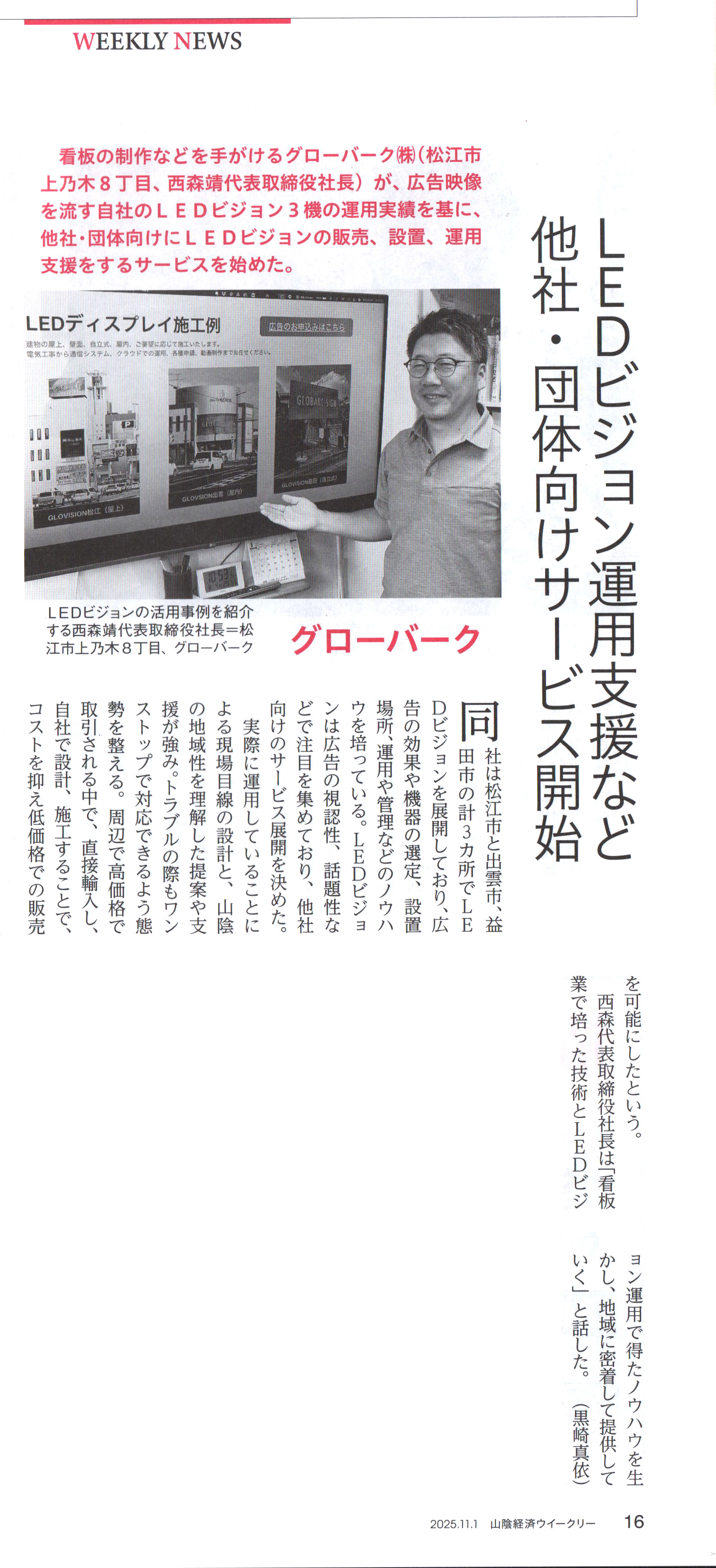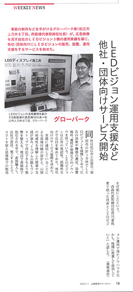 山陰経済ウィークリー 202511月1日号掲載 グローバーク(株)