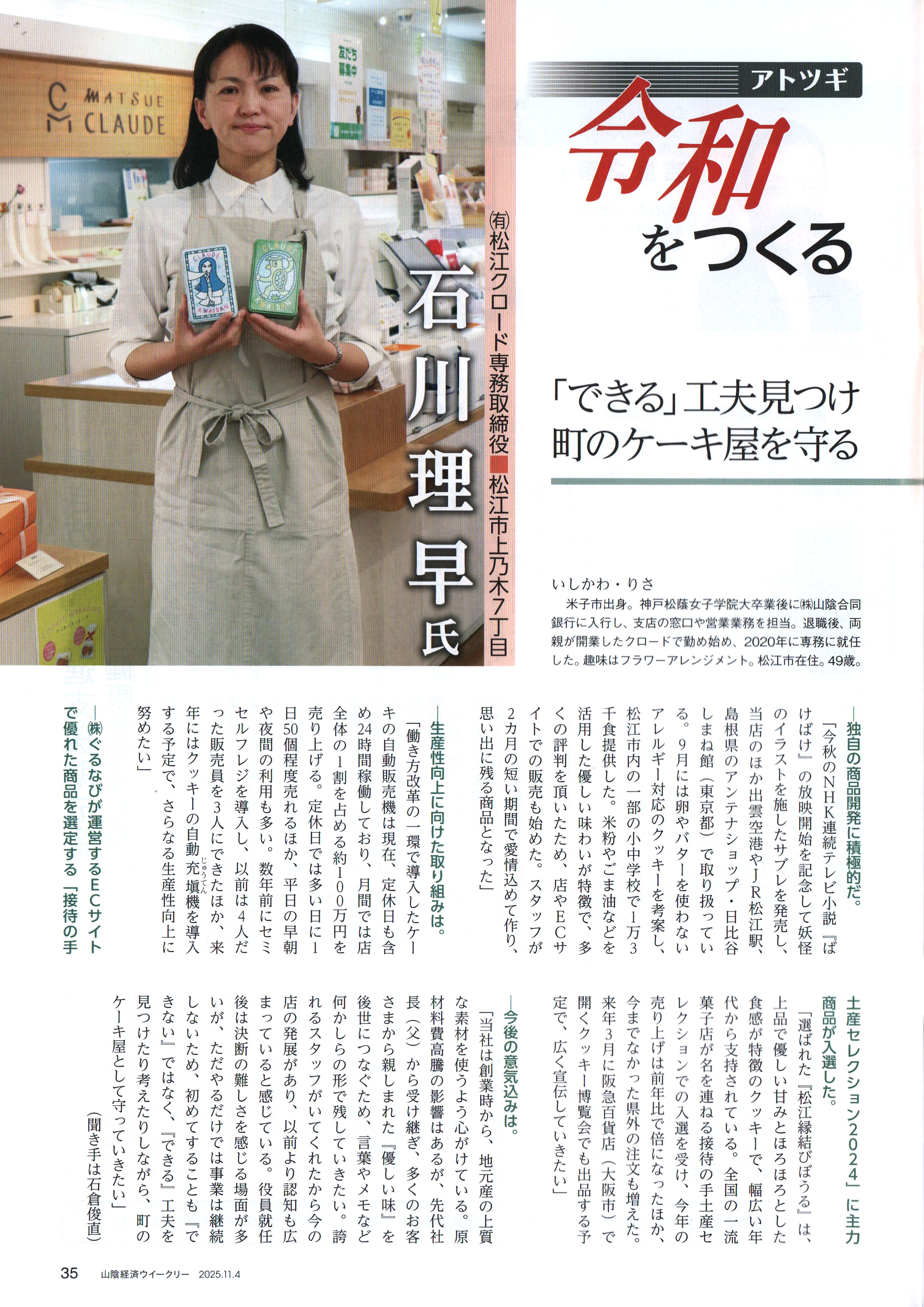 山陰経済ウィークリー 2025年11月1日号掲載 (有)風流堂