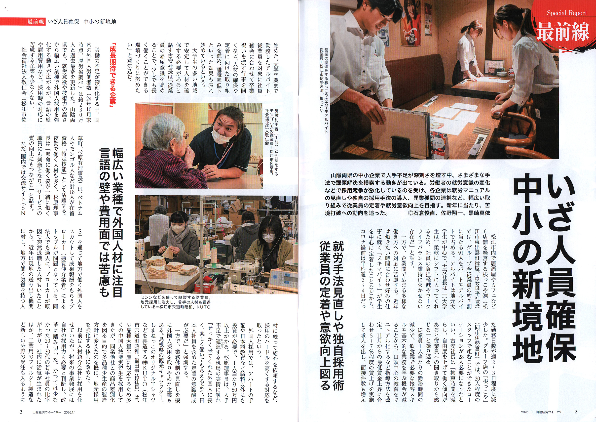 山陰経済ウィークリー 2026年1月1日号掲載 根っこや(株)・(株)KUTO 山陰経済ウィークリー 2026年1月1日号掲載 (株)platinum・(株)竹下電気